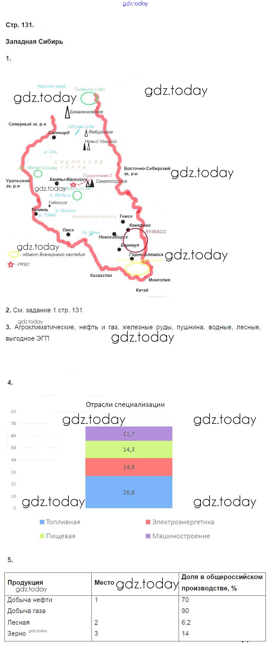 Ответы к Страницы (решение) 131 Рабочей тетради по Географии для 9 класса Ким, Марченко Дрофа Вертикаль 2017