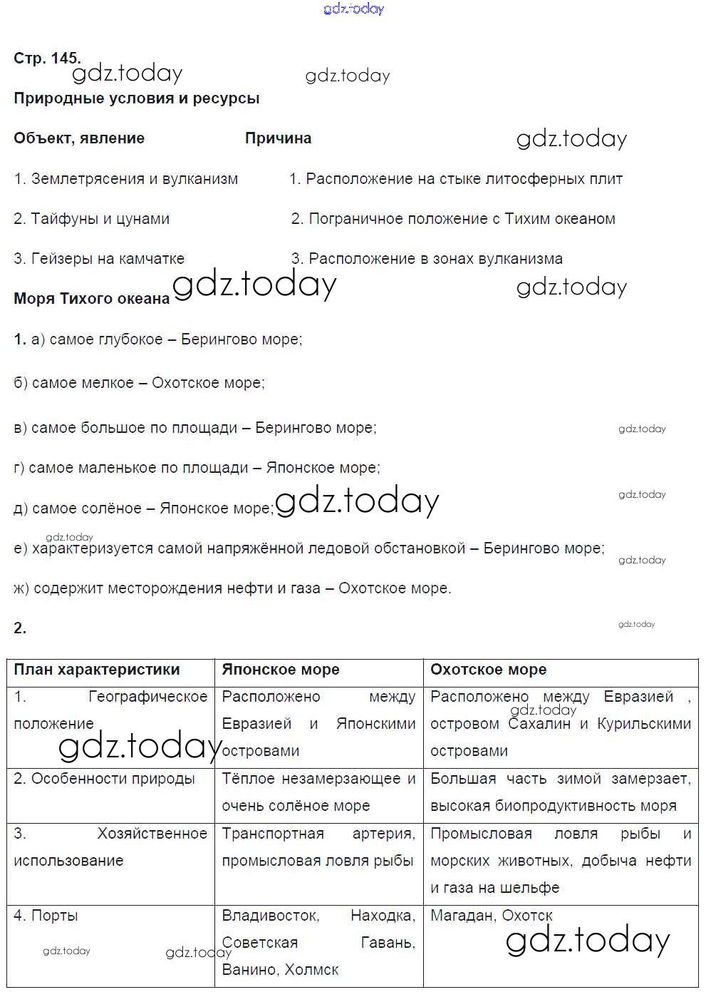 На страницах сайта gdz.today вы найдете учебный и вспомогательный материал, направленный на улучшения знаний школьной программы. ГДЗ - онлайн мир знаний Страницы (решение) 145 Рабочей тетради по Географии для 9 класса Ким, Марченко Дрофа Вертикаль 2017