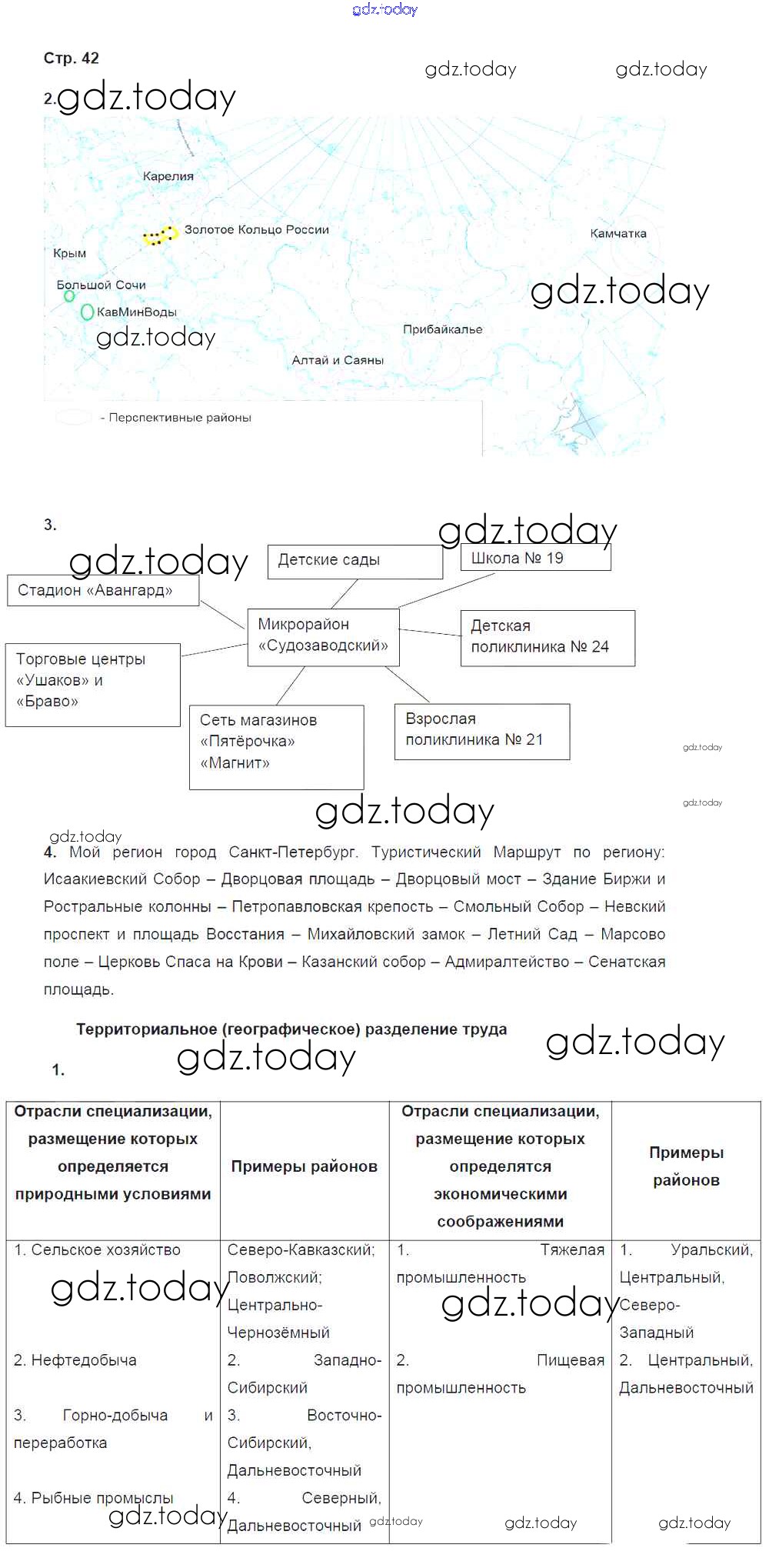 На страницах сайта gdz.today вы найдете учебный и вспомогательный материал, направленный на улучшения знаний школьной программы. ГДЗ - онлайн мир знаний Страницы (решение) 42 Рабочей тетради по Географии для 9 класса Ким, Марченко Дрофа Вертикаль 2017