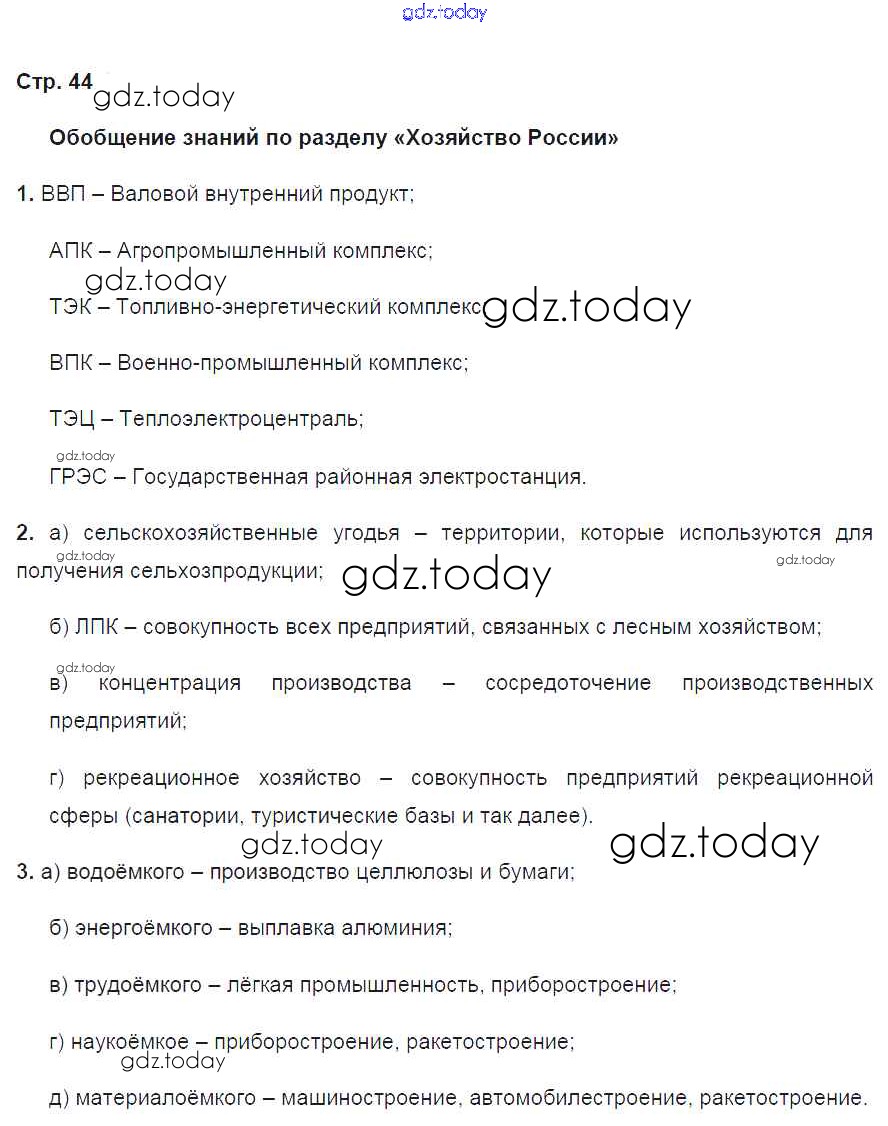 На страницах сайта gdz.today вы найдете учебный и вспомогательный материал, направленный на улучшения знаний школьной программы. ГДЗ - онлайн мир знаний Страницы (решение) 44 Рабочей тетради по Географии для 9 класса Ким, Марченко Дрофа Вертикаль 2017