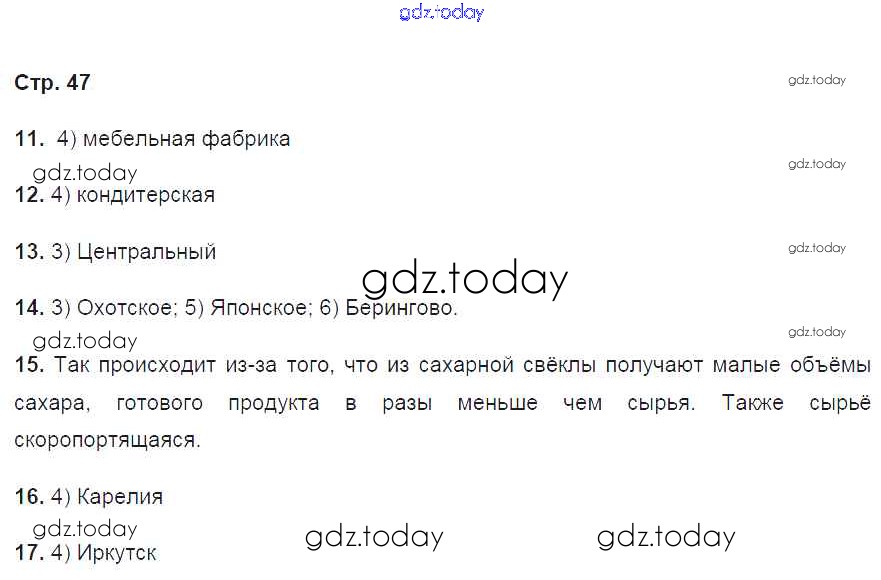 На страницах сайта gdz.today вы найдете учебный и вспомогательный материал, направленный на улучшения знаний школьной программы. ГДЗ - онлайн мир знаний Страницы (решение) 47 Рабочей тетради по Географии для 9 класса Ким, Марченко Дрофа Вертикаль 2017