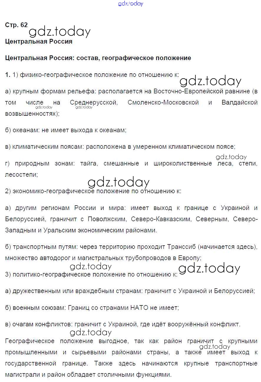 На страницах сайта gdz.today вы найдете учебный и вспомогательный материал, направленный на улучшения знаний школьной программы. ГДЗ - онлайн мир знаний Страницы (решение) 62 Рабочей тетради по Географии для 9 класса Ким, Марченко Дрофа Вертикаль 2017
