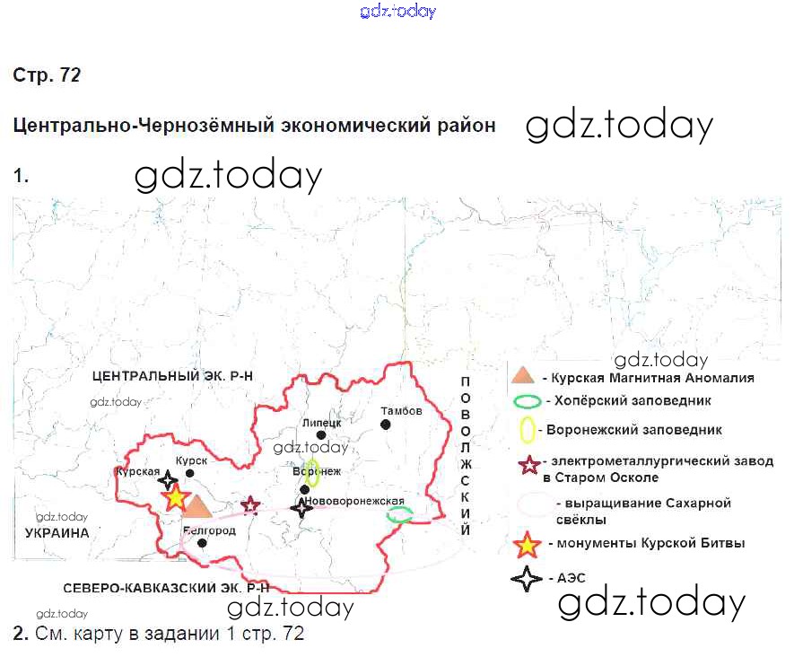 Ответы к Страницы (решение) 72 Рабочей тетради по Географии для 9 класса Ким, Марченко Дрофа Вертикаль 2017