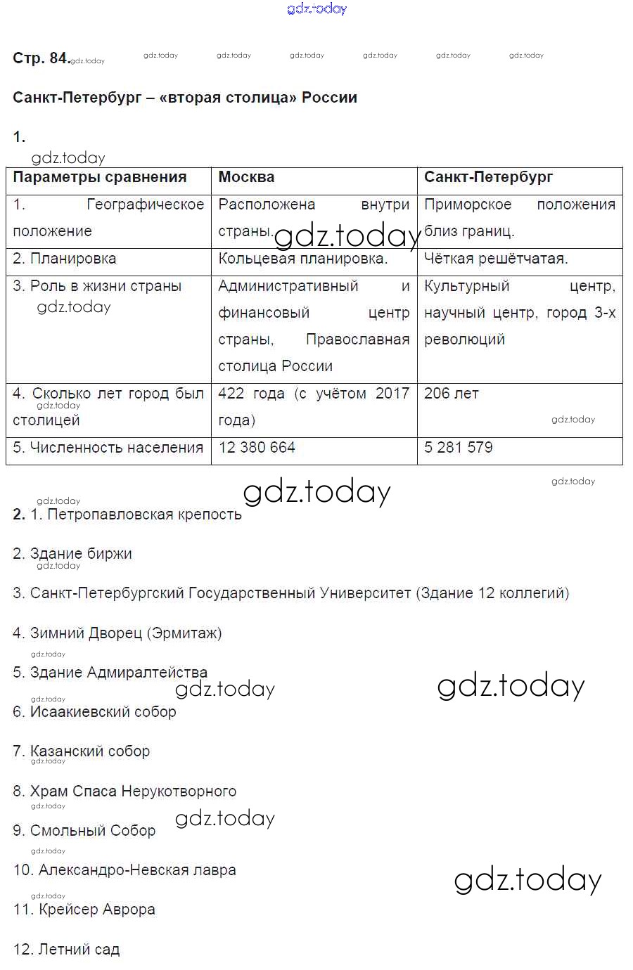 На страницах сайта gdz.today вы найдете учебный и вспомогательный материал, направленный на улучшения знаний школьной программы. ГДЗ - онлайн мир знаний Страницы (решение) 84 Рабочей тетради по Географии для 9 класса Ким, Марченко Дрофа Вертикаль 2017
