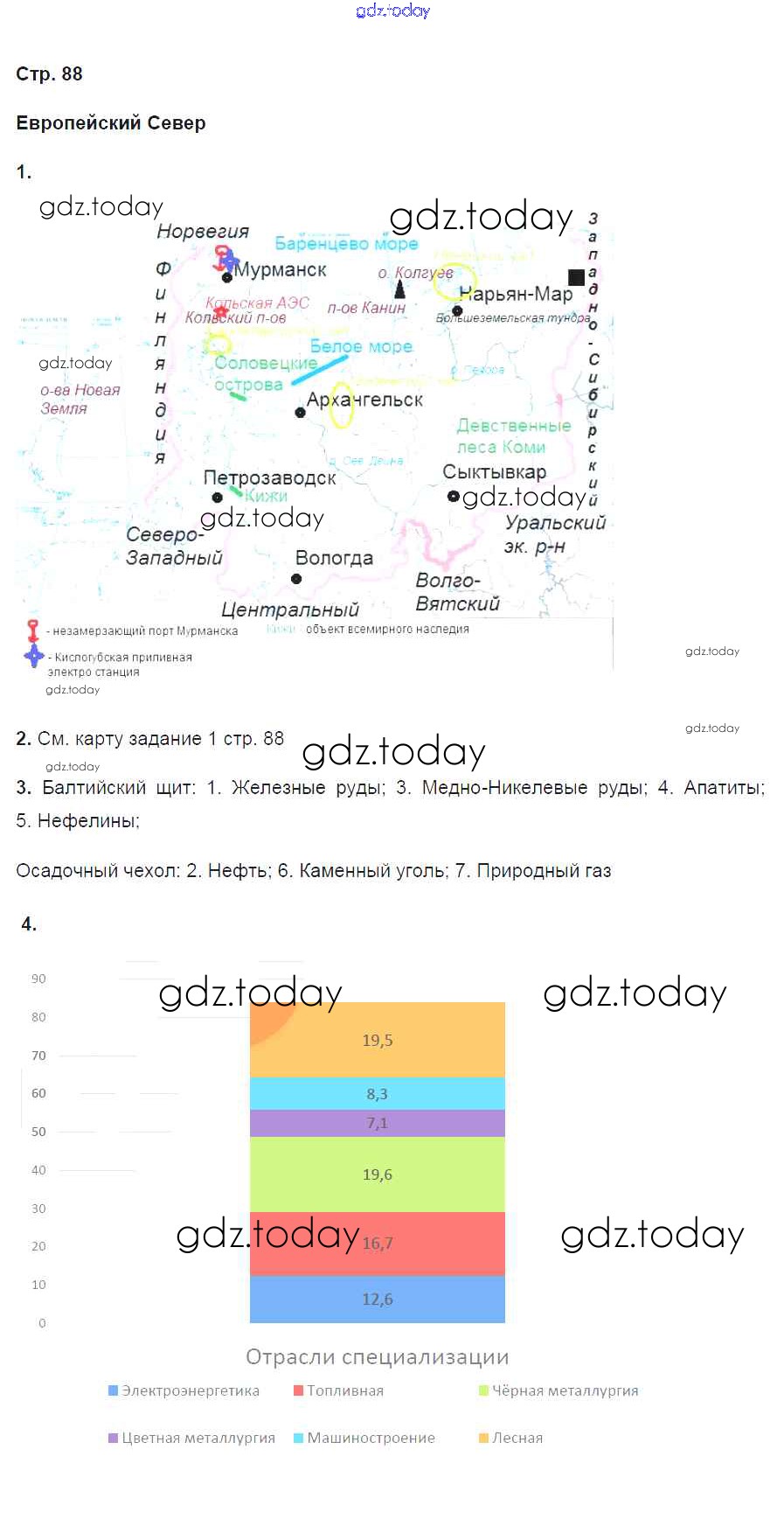 Ответы к Страницы (решение) 88 Рабочей тетради по Географии для 9 класса Ким, Марченко Дрофа Вертикаль 2017