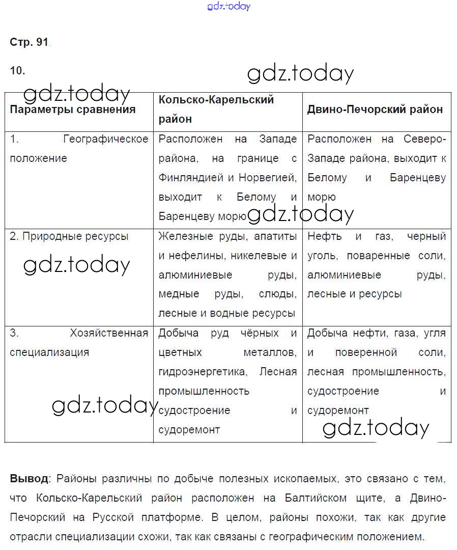 Ответы к Страницы (решение) 91 Рабочей тетради по Географии для 9 класса Ким, Марченко Дрофа Вертикаль 2017