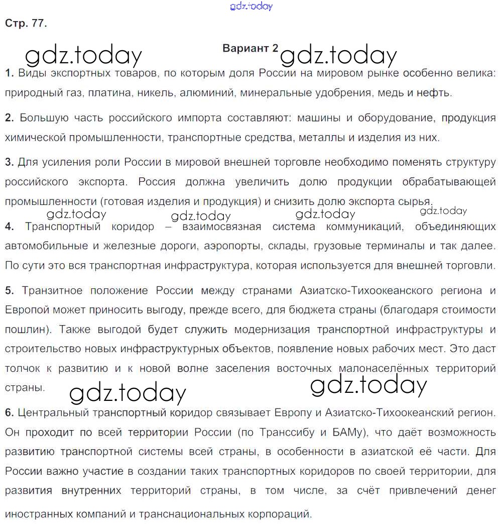 На страницах сайта gdz.today вы найдете учебный и вспомогательный материал, направленный на улучшения знаний школьной программы. ГДЗ - онлайн мир знаний ПР-2 Решение к теме "Россия в мире" вариант-2 Тетради-экзаменатору по Географии для 9 класса Барабанов Просвещение Сферы 2017