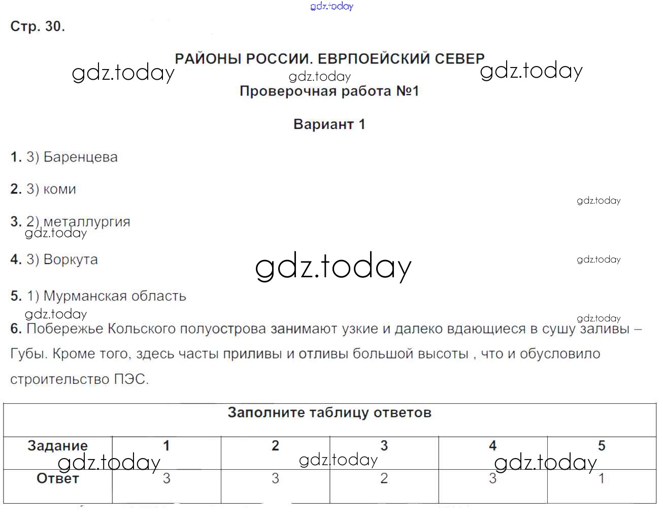 Решение к теме ""Районы России. Европейский Север""
