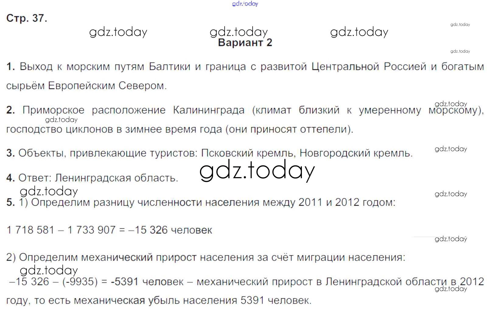 Ответы к ПР-2 Решение к теме "Районы России. Европейский Северо-Запад" вариант-2 Тетради-экзаменатору по Географии для 9 класса Барабанов Просвещение Сферы 2017