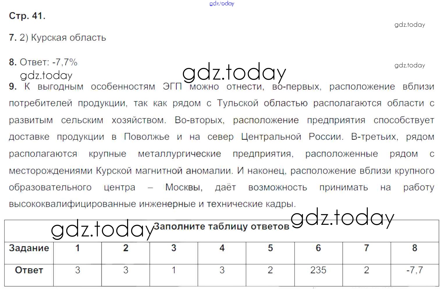 Решение к теме "Районы России. Центральная Россия"