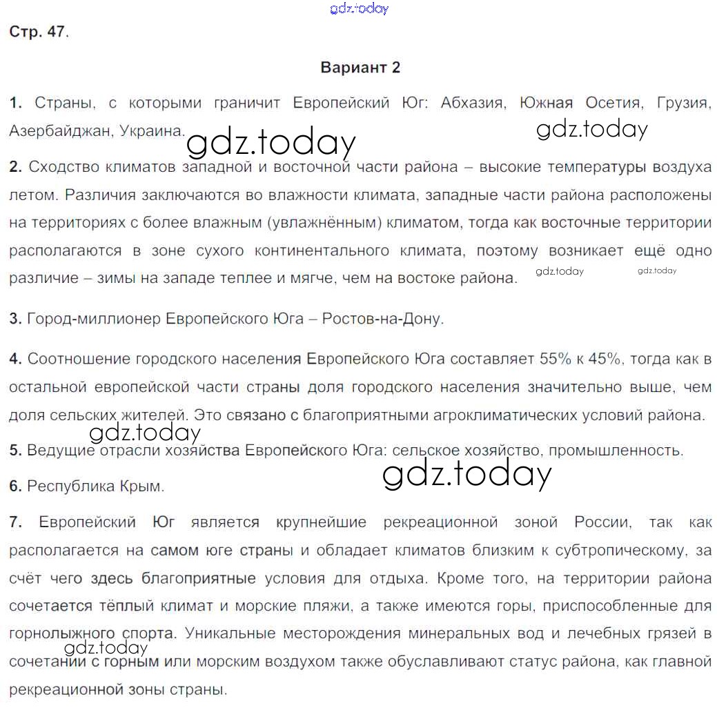 Ответы к ПР-2 Решение к теме "Районы России. Европейский Юг" вариант-2 Тетради-экзаменатору по Географии для 9 класса Барабанов Просвещение Сферы 2017