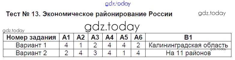 На страницах сайта gdz.today вы найдете учебный и вспомогательный материал, направленный на улучшения знаний школьной программы. ГДЗ - онлайн мир знаний Решение к тестам Тест №13. Экономическое районирование России Контрольно-измерительным материалам (КИМ) по Географии для 9 класса Жижина ВАКО 2017