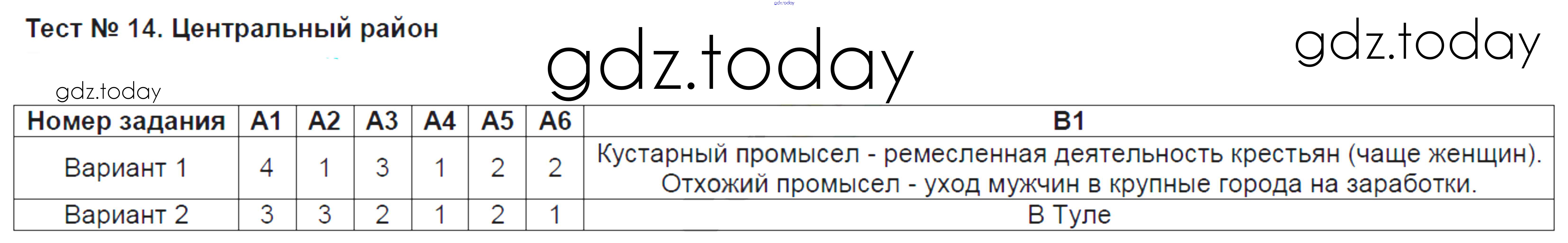 На страницах сайта gdz.today вы найдете учебный и вспомогательный материал, направленный на улучшения знаний школьной программы. ГДЗ - онлайн мир знаний Решение к тестам Тест №14. Центральный район Контрольно-измерительным материалам (КИМ) по Географии для 9 класса Жижина ВАКО 2017