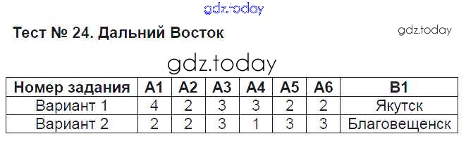 Ответы к Решение к тестам Тест №24. Дальний Восток Контрольно-измерительным материалам (КИМ) по Географии для 9 класса Жижина ВАКО 2017