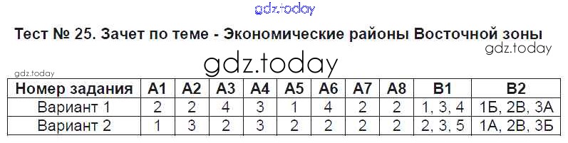 Ответы к Решение к тестам Тест №25. Зачет по теме - Экономические районы Восточной зоны Контрольно-измерительным материалам (КИМ) по Географии для 9 класса Жижина ВАКО 2017