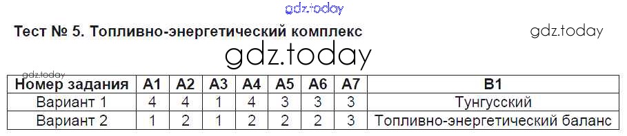 На страницах сайта gdz.today вы найдете учебный и вспомогательный материал, направленный на улучшения знаний школьной программы. ГДЗ - онлайн мир знаний Решение к тестам Тест №5. Топливно-энергетический комплекс Контрольно-измерительным материалам (КИМ) по Географии для 9 класса Жижина ВАКО 2017