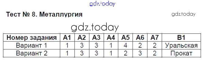 Ответы к Решение к тестам Тест №8. Металлургия Контрольно-измерительным материалам (КИМ) по Географии для 9 класса Жижина ВАКО 2017