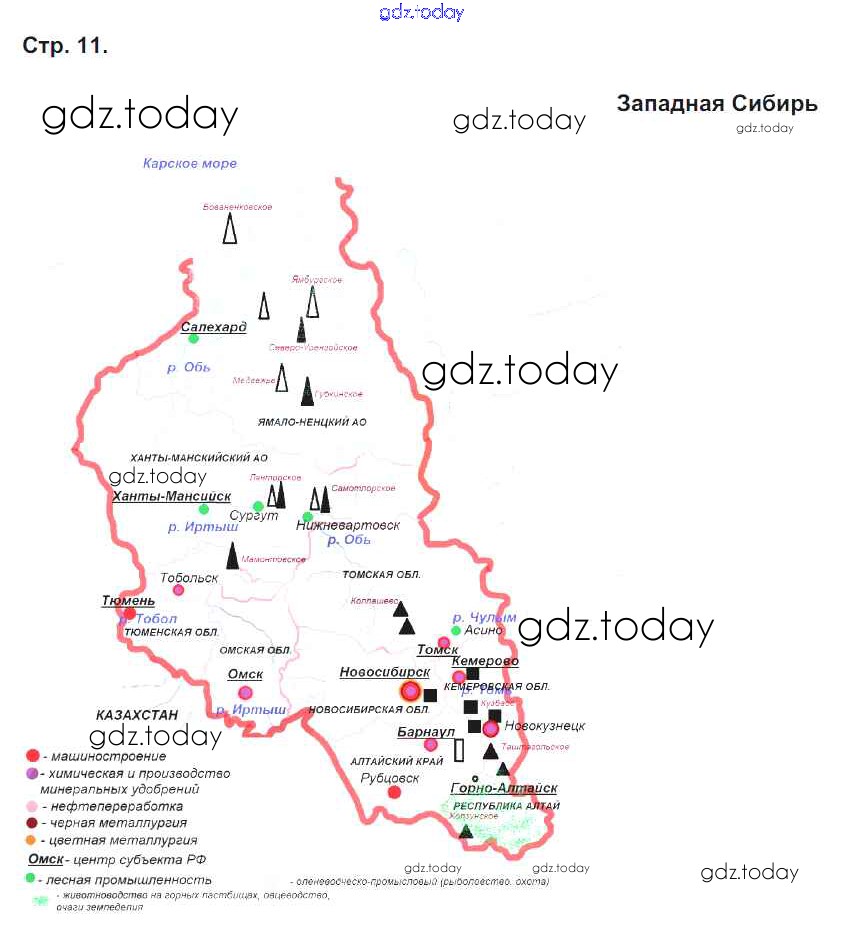 Ответы к Страницы (решение) стр.11. Западная Сибирь Контурным картам по Географии для 9 класса Приваловский Дрофа 2020