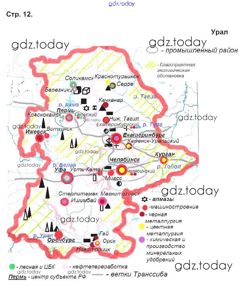 Ответы к Страницы (решение) стр.12. Урал Контурным картам по Географии для 9 класса Приваловский Дрофа 2020