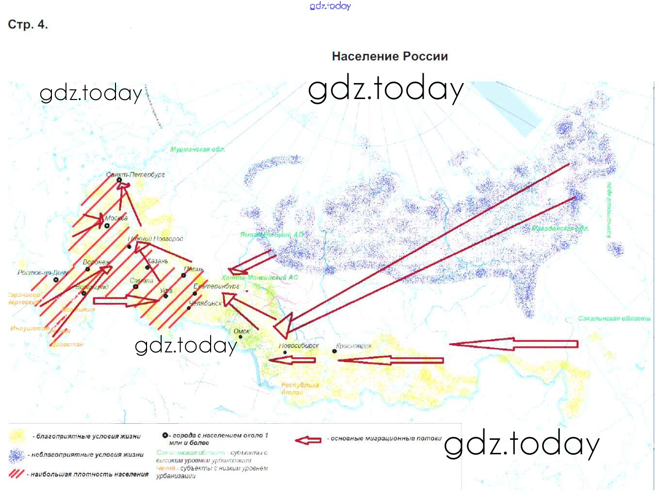 На страницах сайта gdz.today вы найдете учебный и вспомогательный материал, направленный на улучшения знаний школьной программы. ГДЗ - онлайн мир знаний Страницы (решение) стр.4. Население России Контурным картам по Географии для 9 класса Приваловский Дрофа 2020