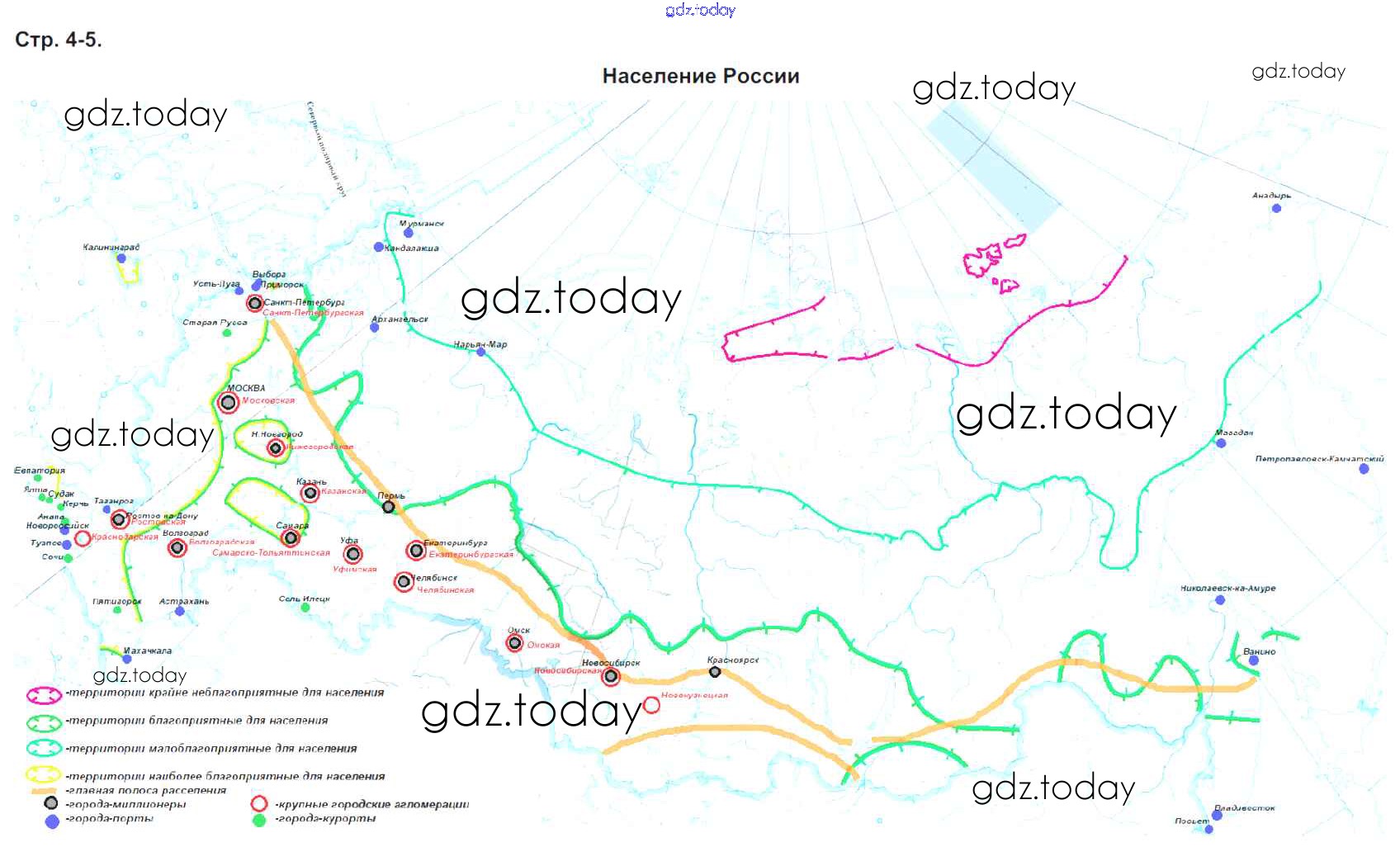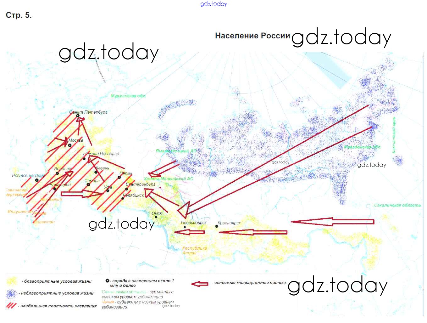 На страницах сайта gdz.today вы найдете учебный и вспомогательный материал, направленный на улучшения знаний школьной программы. ГДЗ - онлайн мир знаний Страницы (решение) стр.5. Население России-2 Контурным картам по Географии для 9 класса Приваловский Дрофа 2020