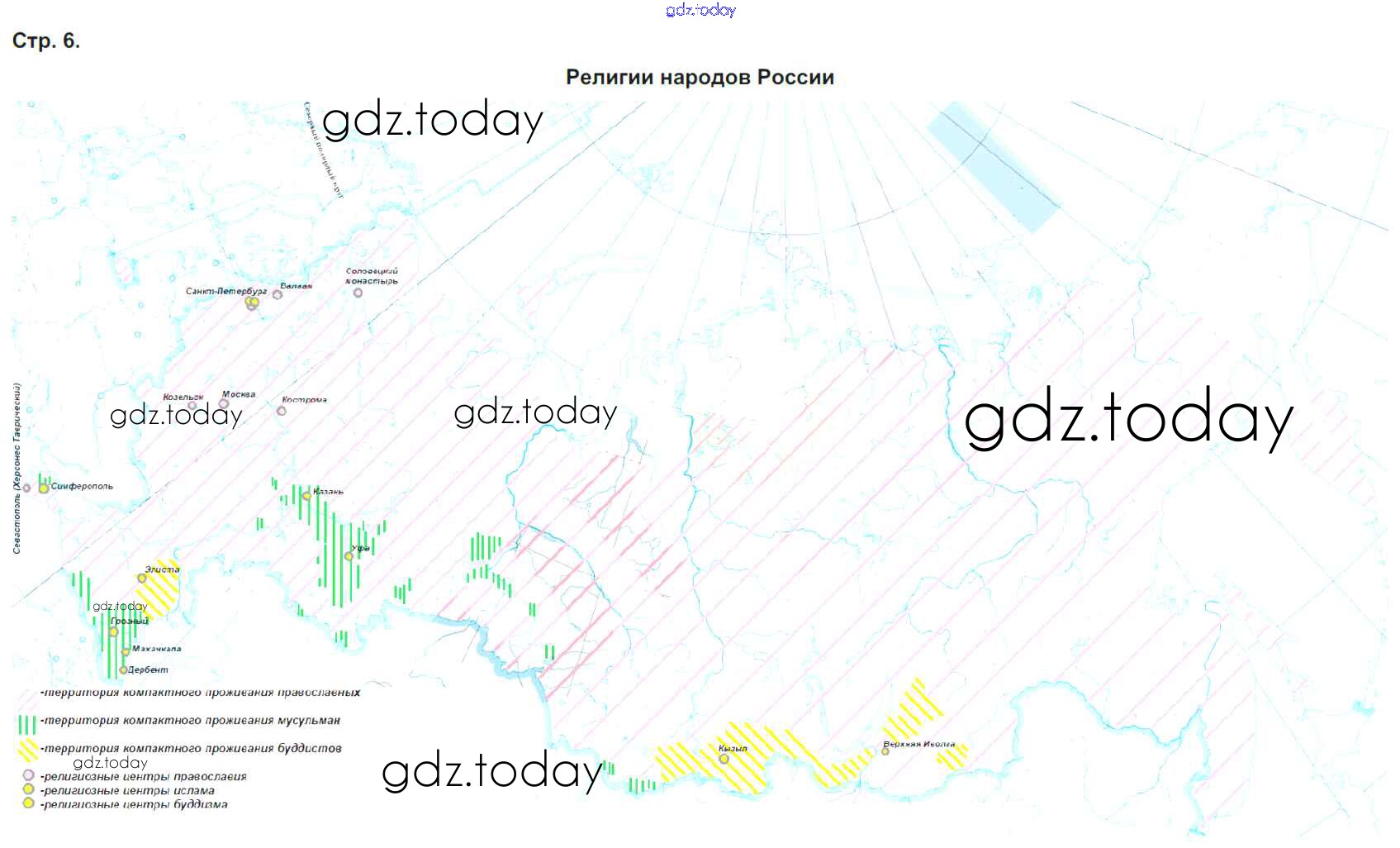 Ответы к Страницы (решение) стр.6. Религии народов России Контурным картам по Географии для 9 класса Приваловский Дрофа 2020