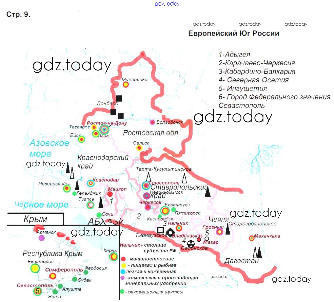Ответы к Страницы (решение) стр.9. Европейский Юг России Контурным картам по Географии для 9 класса Приваловский Дрофа 2020
