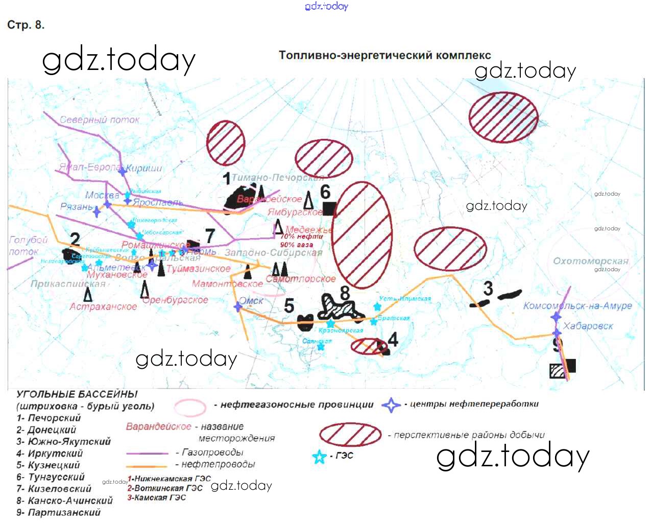 Ответы к Страницы (решение) стр.8. Топливо-энергетический комплекс Контурным картам по Географии для 9 класса Приваловский Дрофа 2020