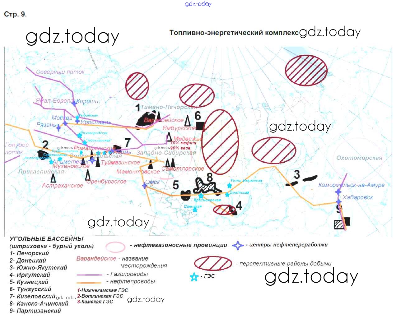 Ответы к Страницы (решение) стр.9. Топливо-энергетический комплекс-2 Контурным картам по Географии для 9 класса Приваловский Дрофа 2020