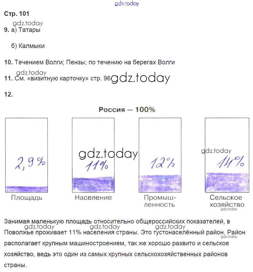Ответы к Страницы (решение) 101 Рабочей тетради по Географии для 9 класса Баринова, Дронов Дрофа Вертикаль 2016