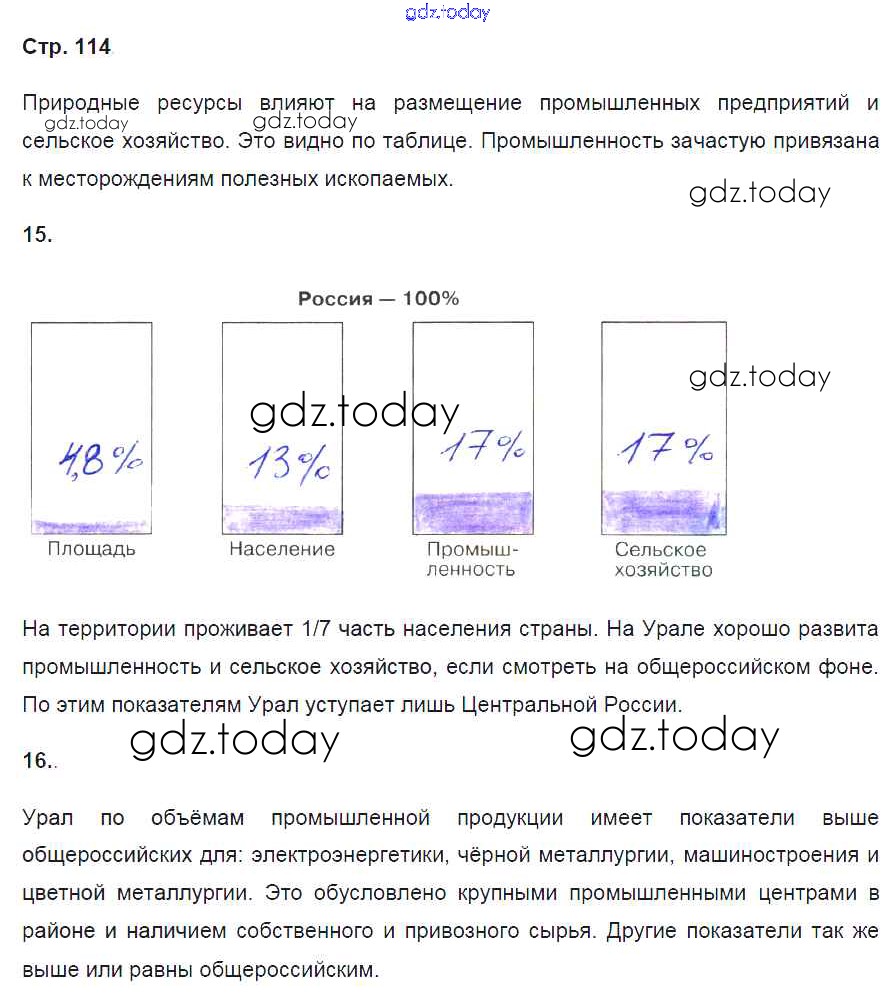 Ответы к Страницы (решение) 114 Рабочей тетради по Географии для 9 класса Баринова, Дронов Дрофа Вертикаль 2016