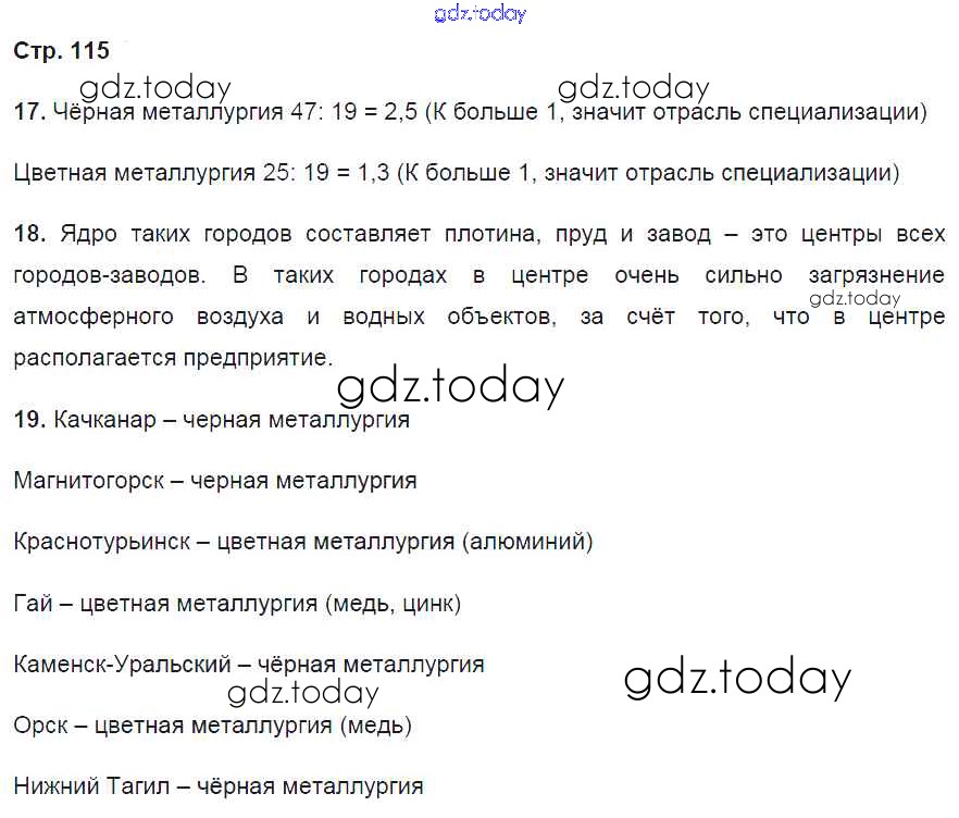 Ответы к Страницы (решение) 115 Рабочей тетради по Географии для 9 класса Баринова, Дронов Дрофа Вертикаль 2016