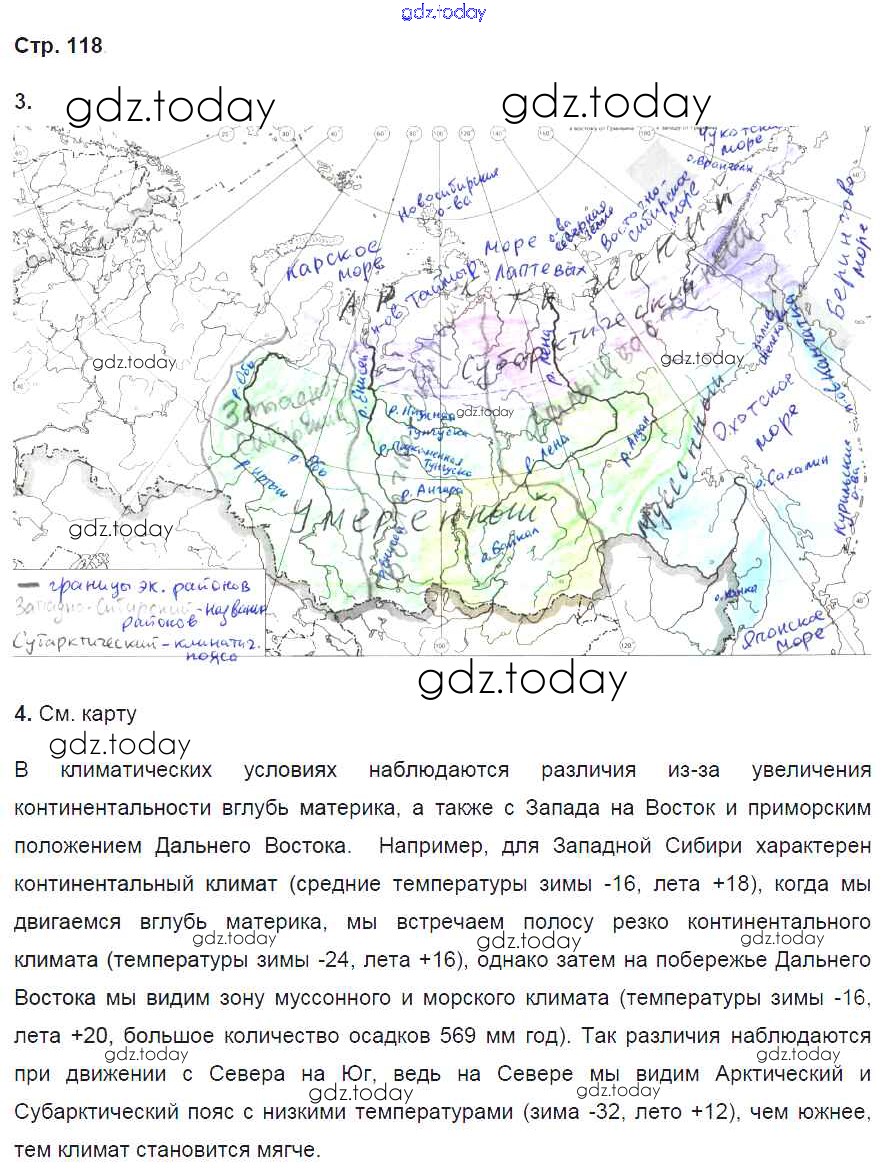 Ответы к Страницы (решение) 118 Рабочей тетради по Географии для 9 класса Баринова, Дронов Дрофа Вертикаль 2016