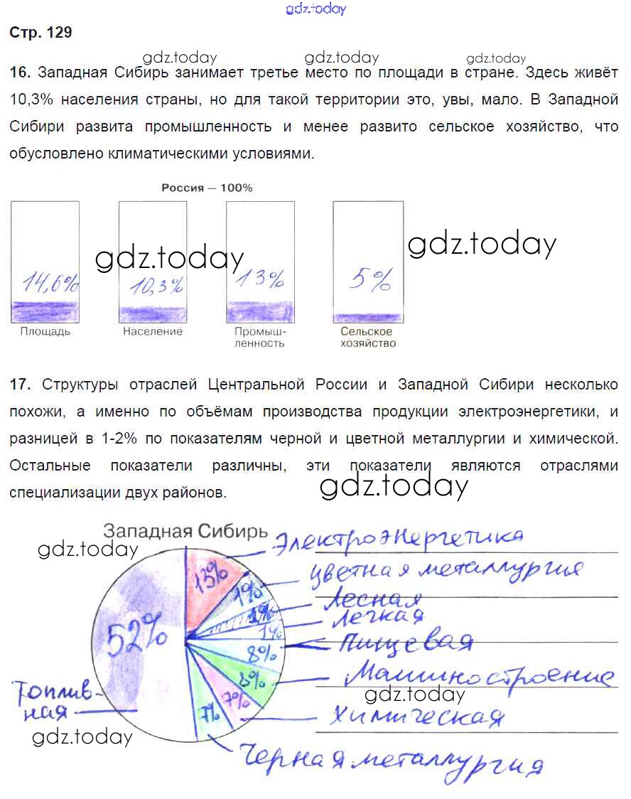 Ответы к Страницы (решение) 129 Рабочей тетради по Географии для 9 класса Баринова, Дронов Дрофа Вертикаль 2016