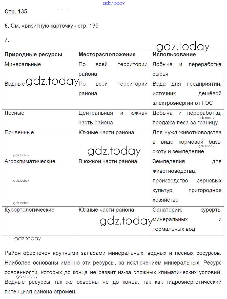 Ответы к Страницы (решение) 135 Рабочей тетради по Географии для 9 класса Баринова, Дронов Дрофа Вертикаль 2016