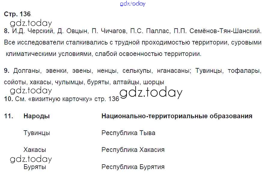 Ответы к Страницы (решение) 136 Рабочей тетради по Географии для 9 класса Баринова, Дронов Дрофа Вертикаль 2016