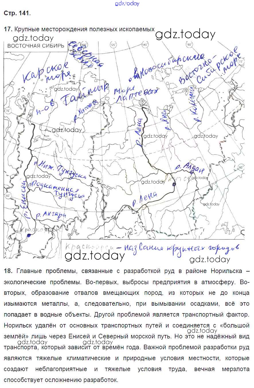 Ответы к Страницы (решение) 141 Рабочей тетради по Географии для 9 класса Баринова, Дронов Дрофа Вертикаль 2016