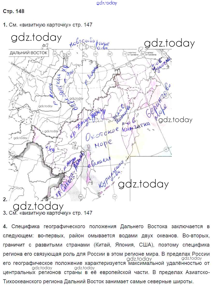 Ответы к Страницы (решение) 148 Рабочей тетради по Географии для 9 класса Баринова, Дронов Дрофа Вертикаль 2016