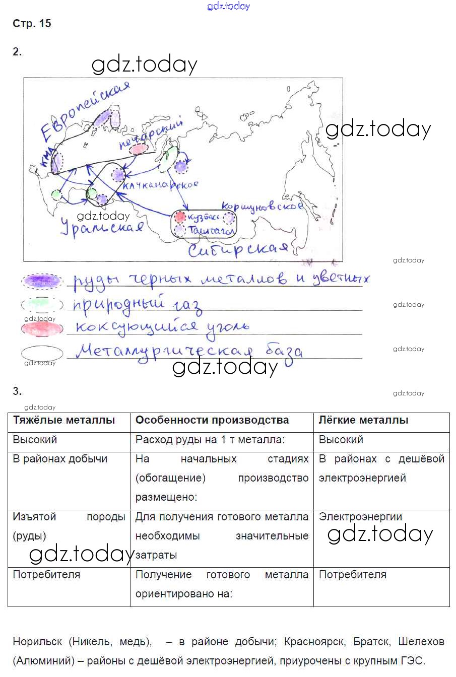 Ответы к Страницы (решение) 15 Рабочей тетради по Географии для 9 класса Баринова, Дронов Дрофа Вертикаль 2016