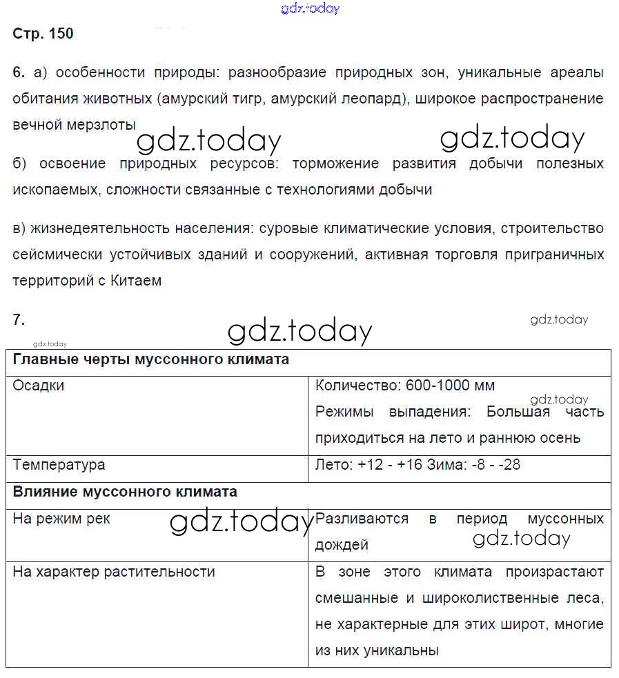 Ответы к Страницы (решение) 150 Рабочей тетради по Географии для 9 класса Баринова, Дронов Дрофа Вертикаль 2016