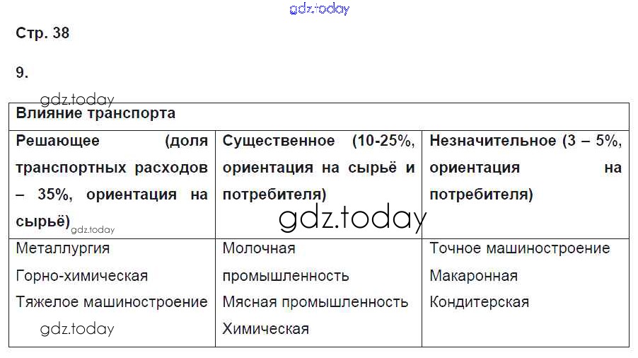 Ответы к Страницы (решение) 38 Рабочей тетради по Географии для 9 класса Баринова, Дронов Дрофа Вертикаль 2016