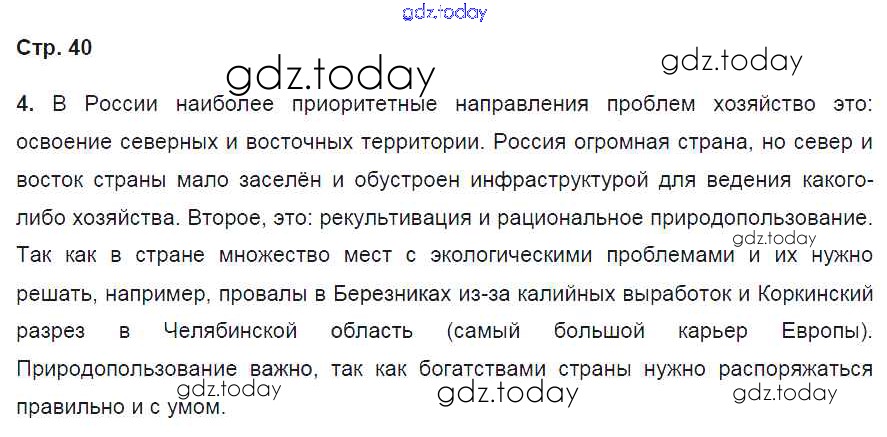 Ответы к Страницы (решение) 40 Рабочей тетради по Географии для 9 класса Баринова, Дронов Дрофа Вертикаль 2016
