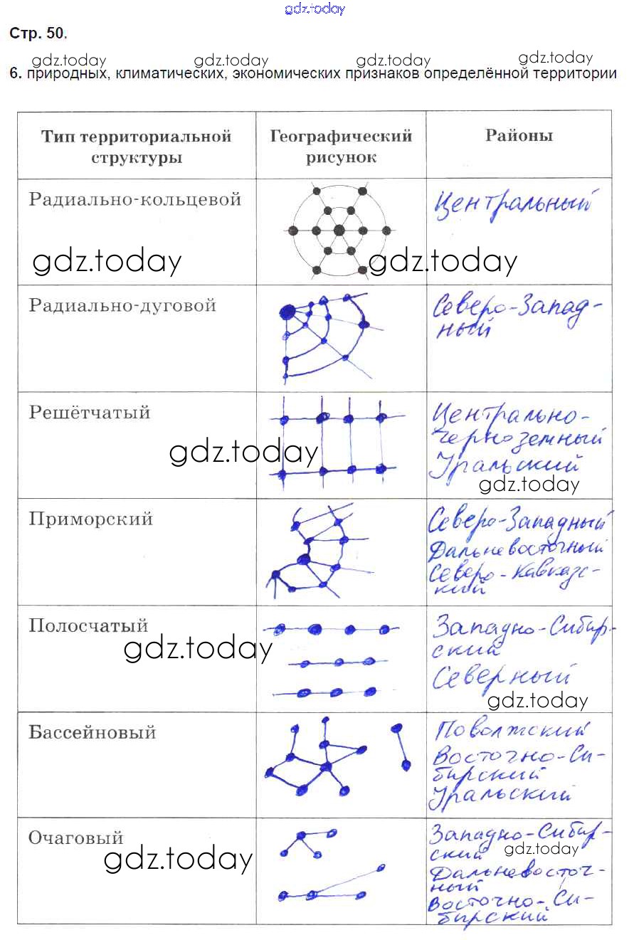Ответы к Страницы (решение) 50 Рабочей тетради по Географии для 9 класса Баринова, Дронов Дрофа Вертикаль 2016