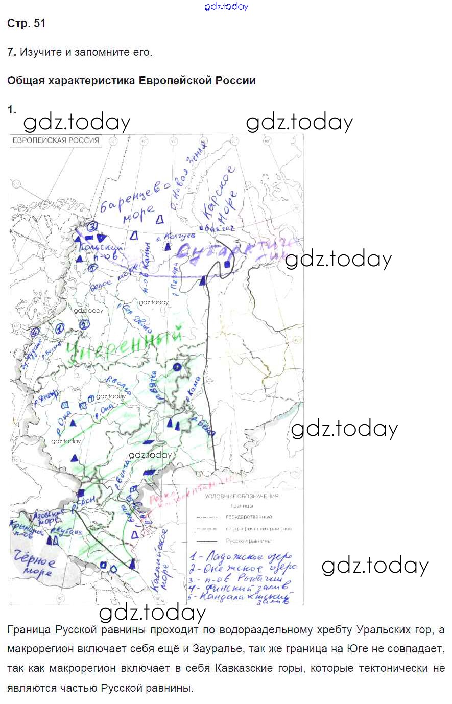 Ответы к Страницы (решение) 51 Рабочей тетради по Географии для 9 класса Баринова, Дронов Дрофа Вертикаль 2016