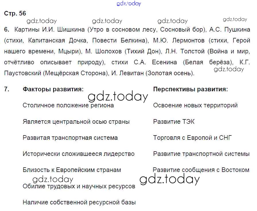 Ответы к Страницы (решение) 56 Рабочей тетради по Географии для 9 класса Баринова, Дронов Дрофа Вертикаль 2016