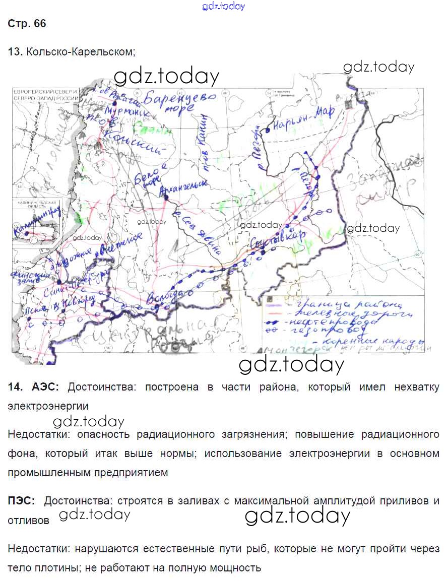 Ответы к Страницы (решение) 66 Рабочей тетради по Географии для 9 класса Баринова, Дронов Дрофа Вертикаль 2016