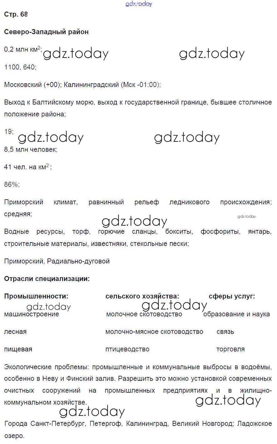 На страницах сайта gdz.today вы найдете учебный и вспомогательный материал, направленный на улучшения знаний школьной программы. ГДЗ - онлайн мир знаний Страницы (решение) 68 Рабочей тетради по Географии для 9 класса Баринова, Дронов Дрофа Вертикаль 2016