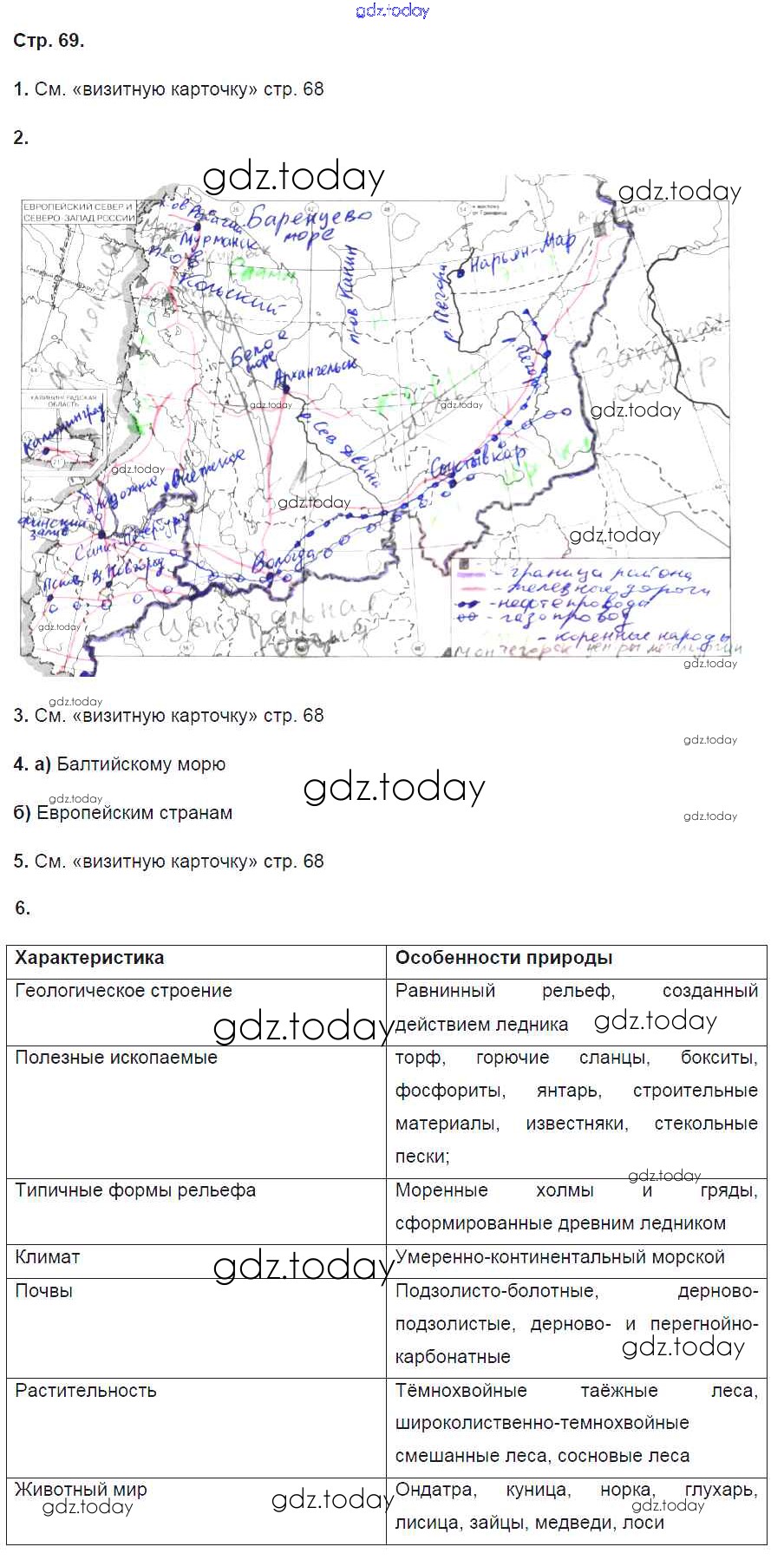 Ответы к Страницы (решение) 69 Рабочей тетради по Географии для 9 класса Баринова, Дронов Дрофа Вертикаль 2016