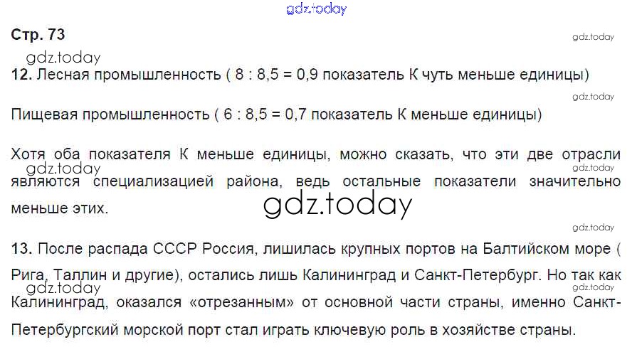 Ответы к Страницы (решение) 73 Рабочей тетради по Географии для 9 класса Баринова, Дронов Дрофа Вертикаль 2016