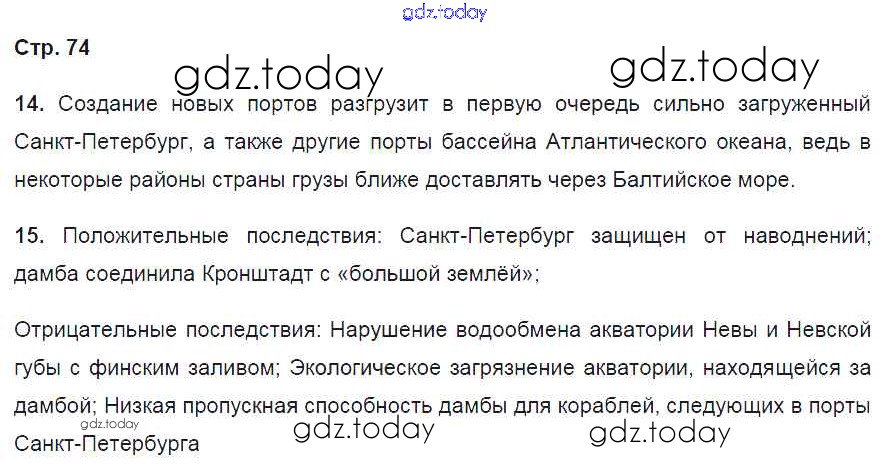 Ответы к Страницы (решение) 74 Рабочей тетради по Географии для 9 класса Баринова, Дронов Дрофа Вертикаль 2016